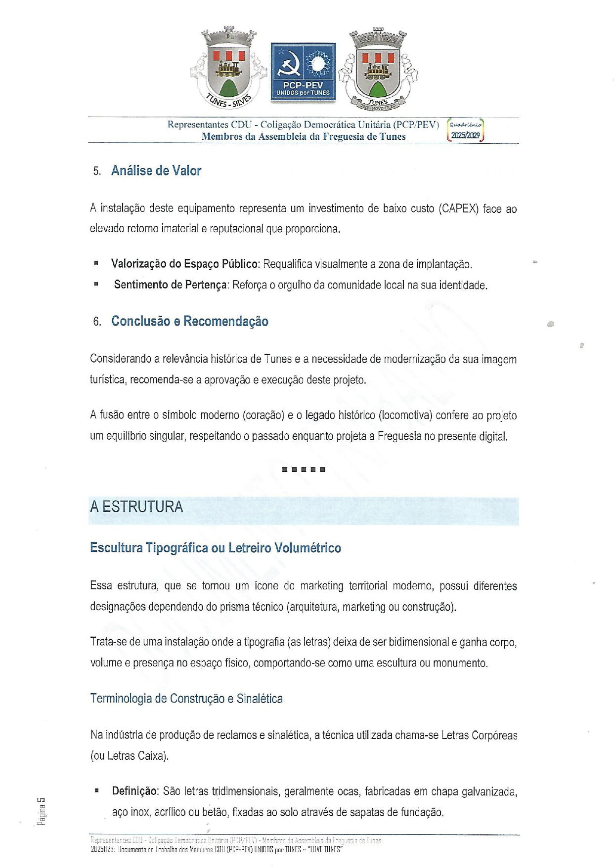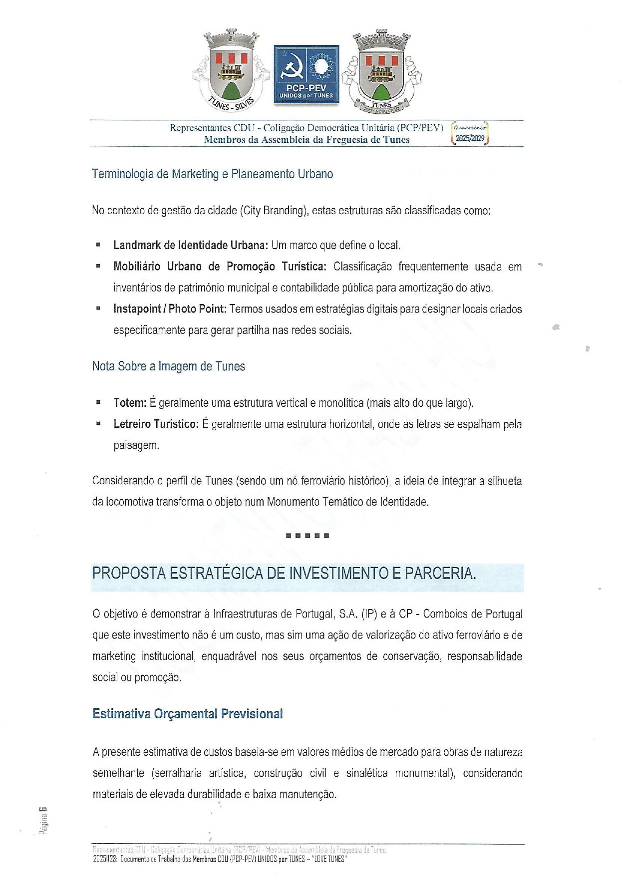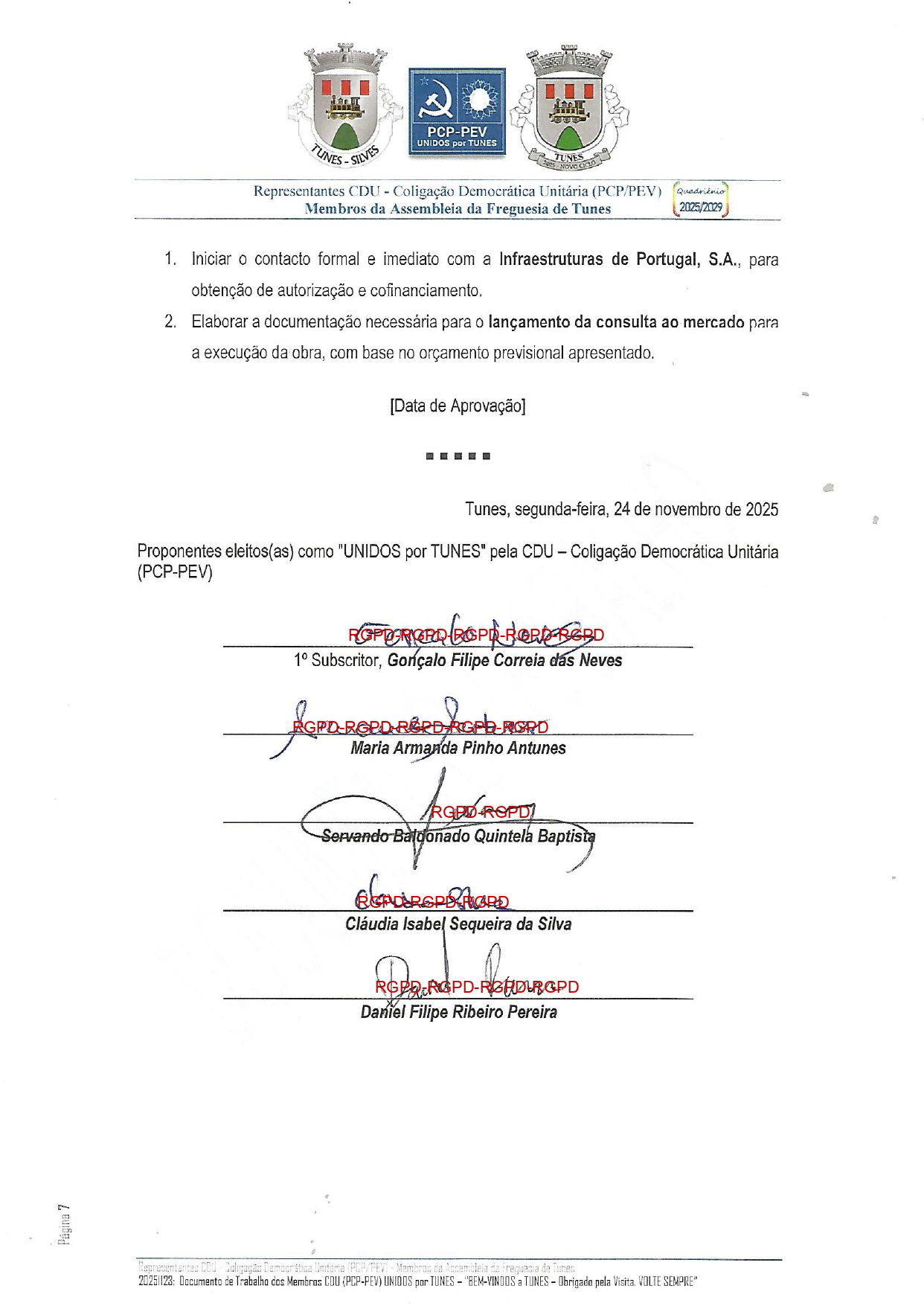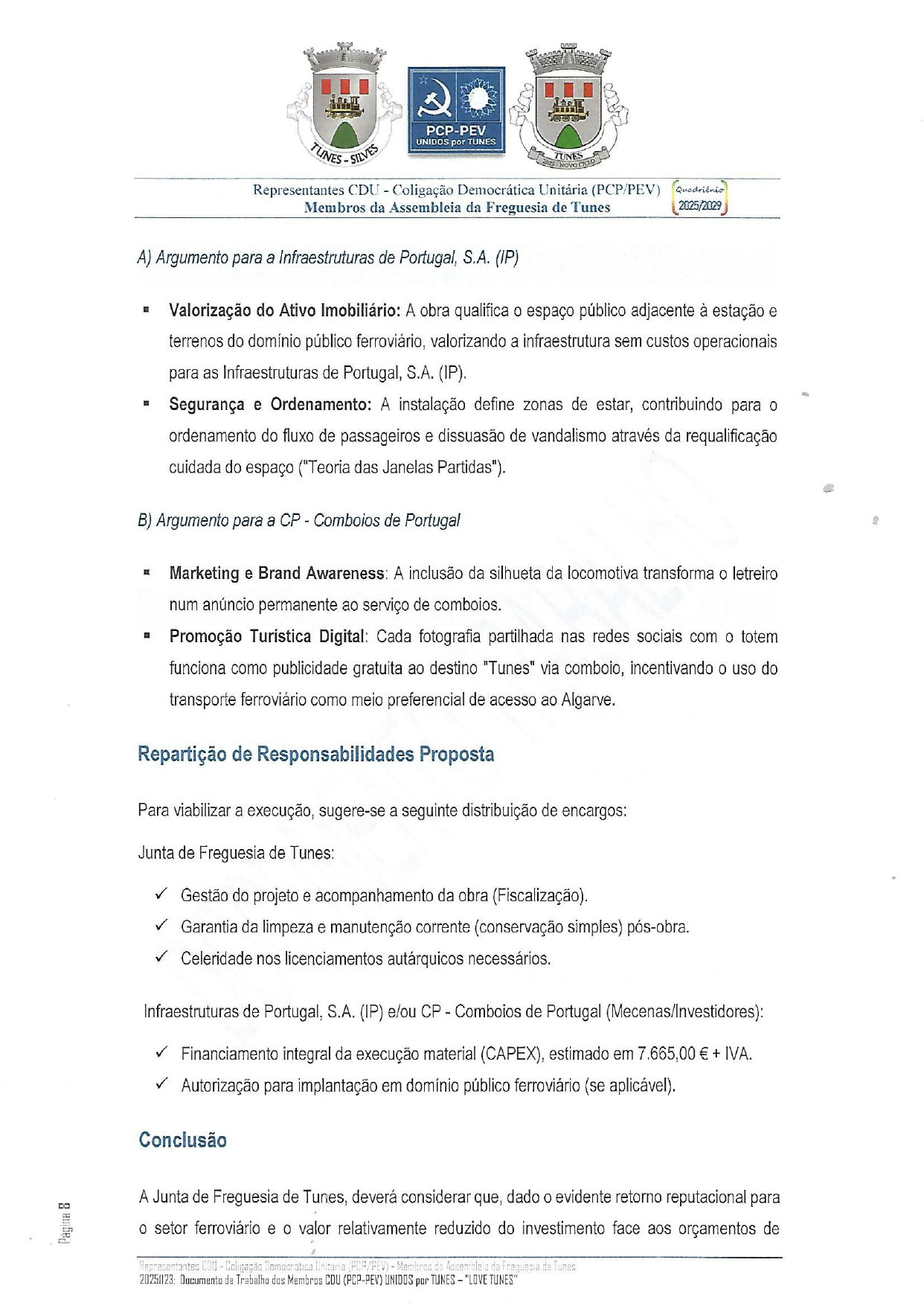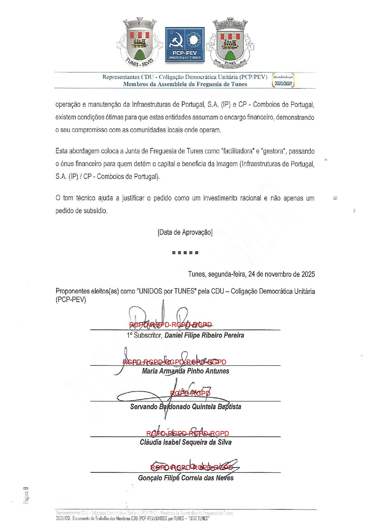 PROPOSTA/SUGESTÃO/DOCUMENTO DE TRABALHO – Apresentados na Sessão Extraordinária da Assembleia de Freguesia de 24/11/2025 pelos Membros da Bancada CDU – Coligação Democrática (PCP-PEV)
